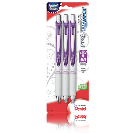 Pentel EnerGel Pearl Retractable Gel Pen, Assorted 3-Packs