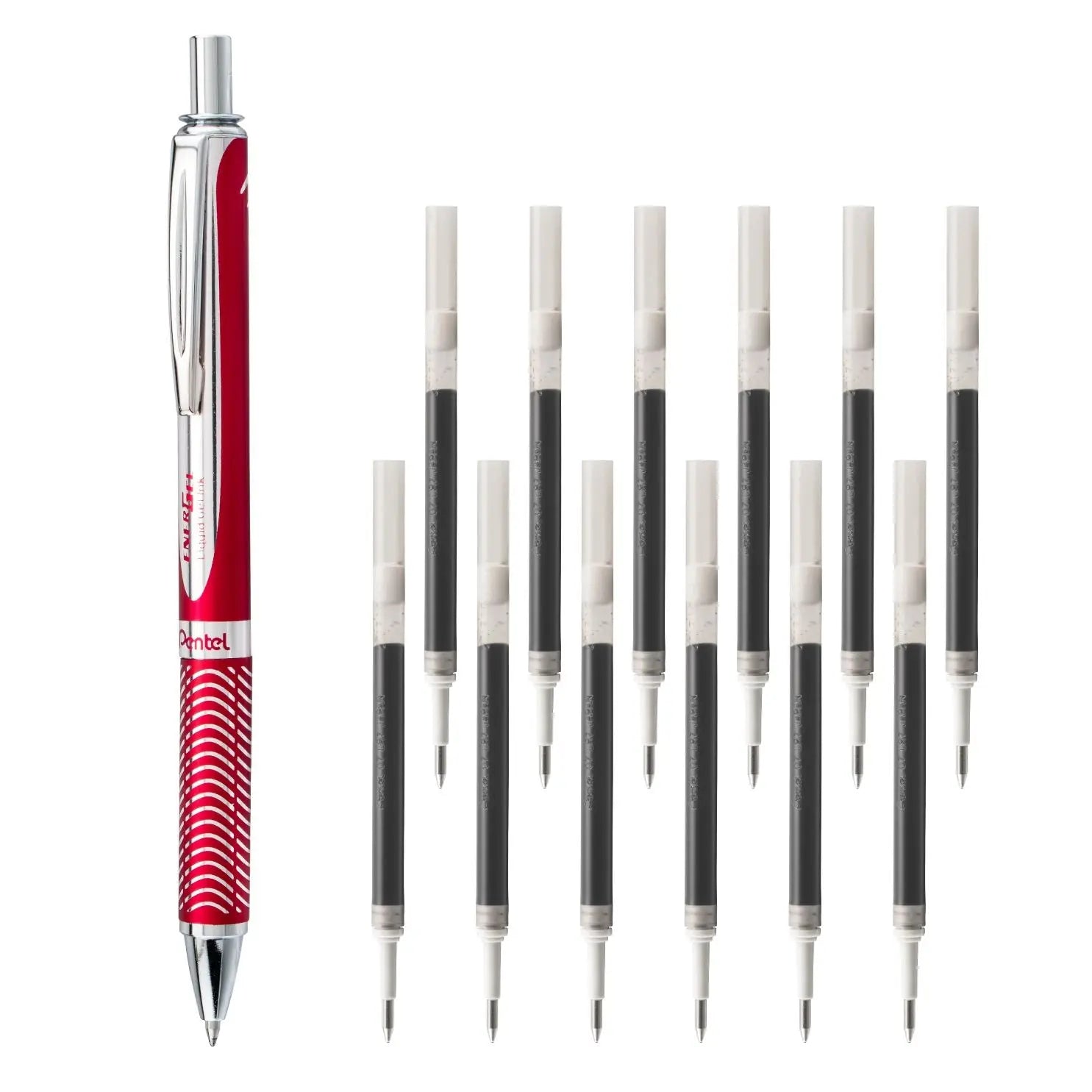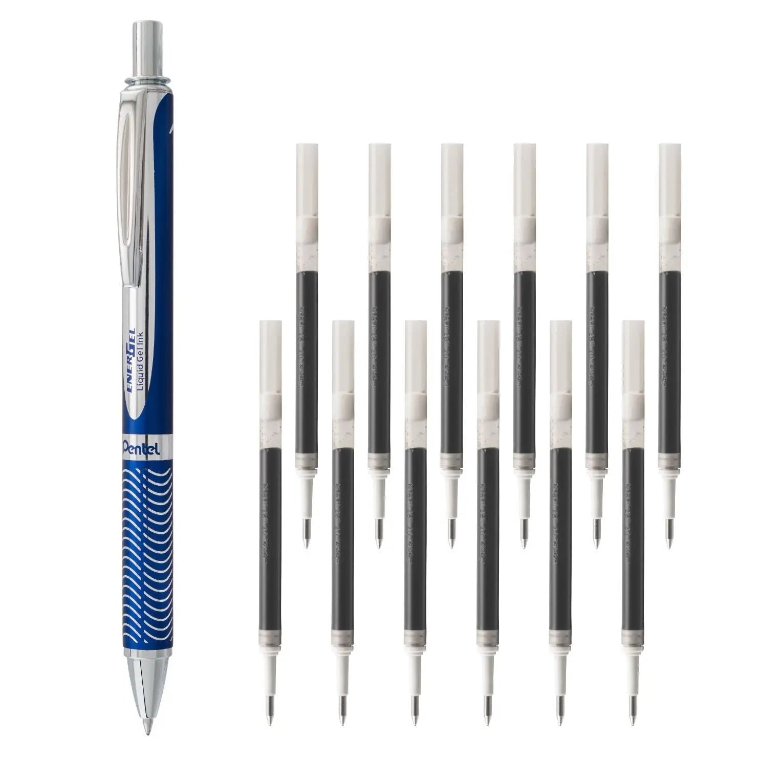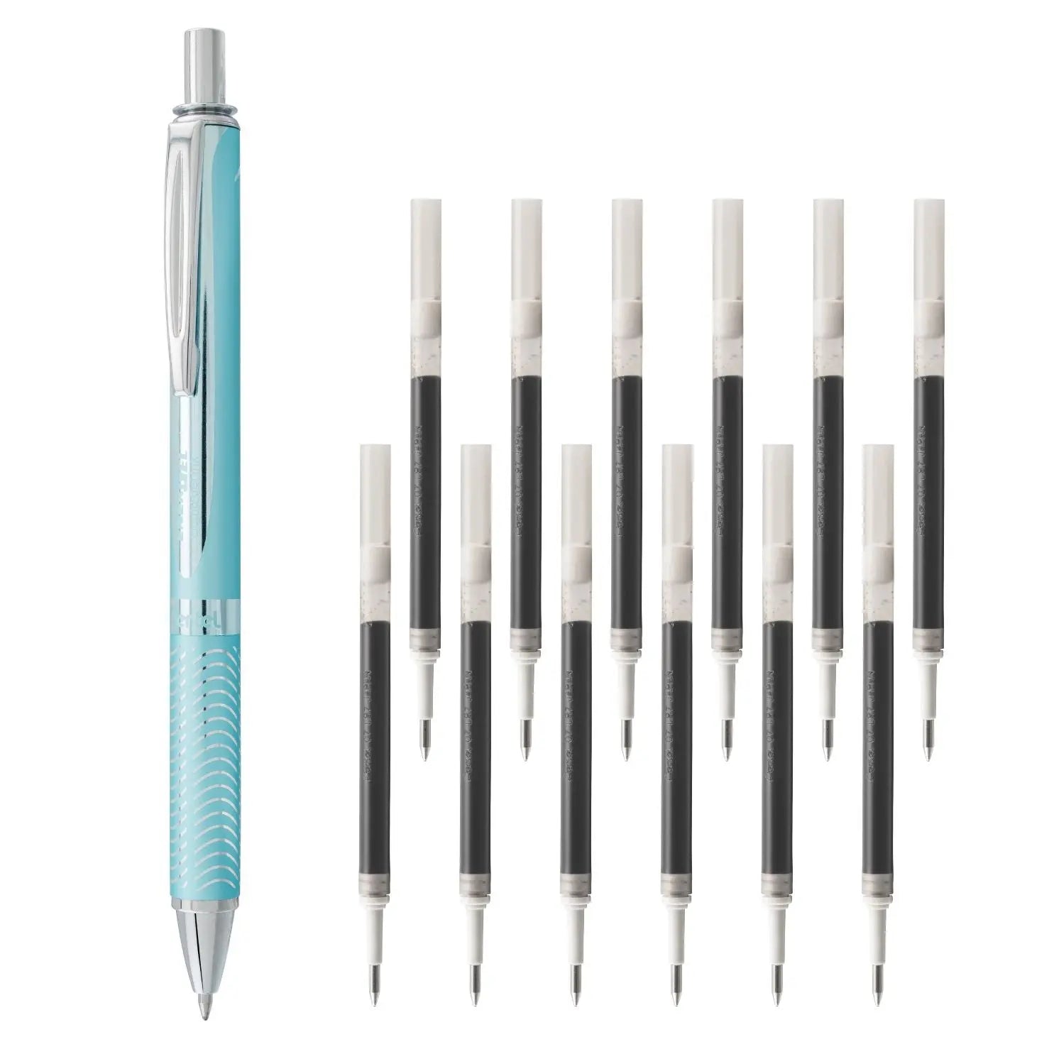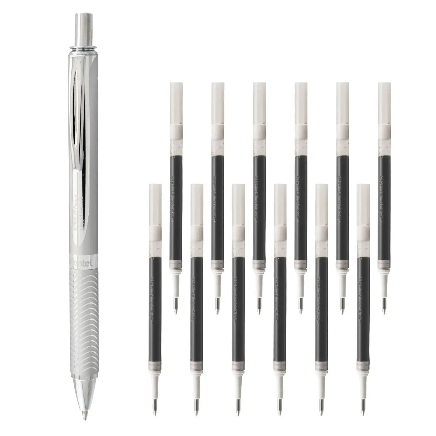 EnerGel Alloy Liquid Gel Pen (0.7mm) Metal Tip with 12 Refills (Custom Bundle)