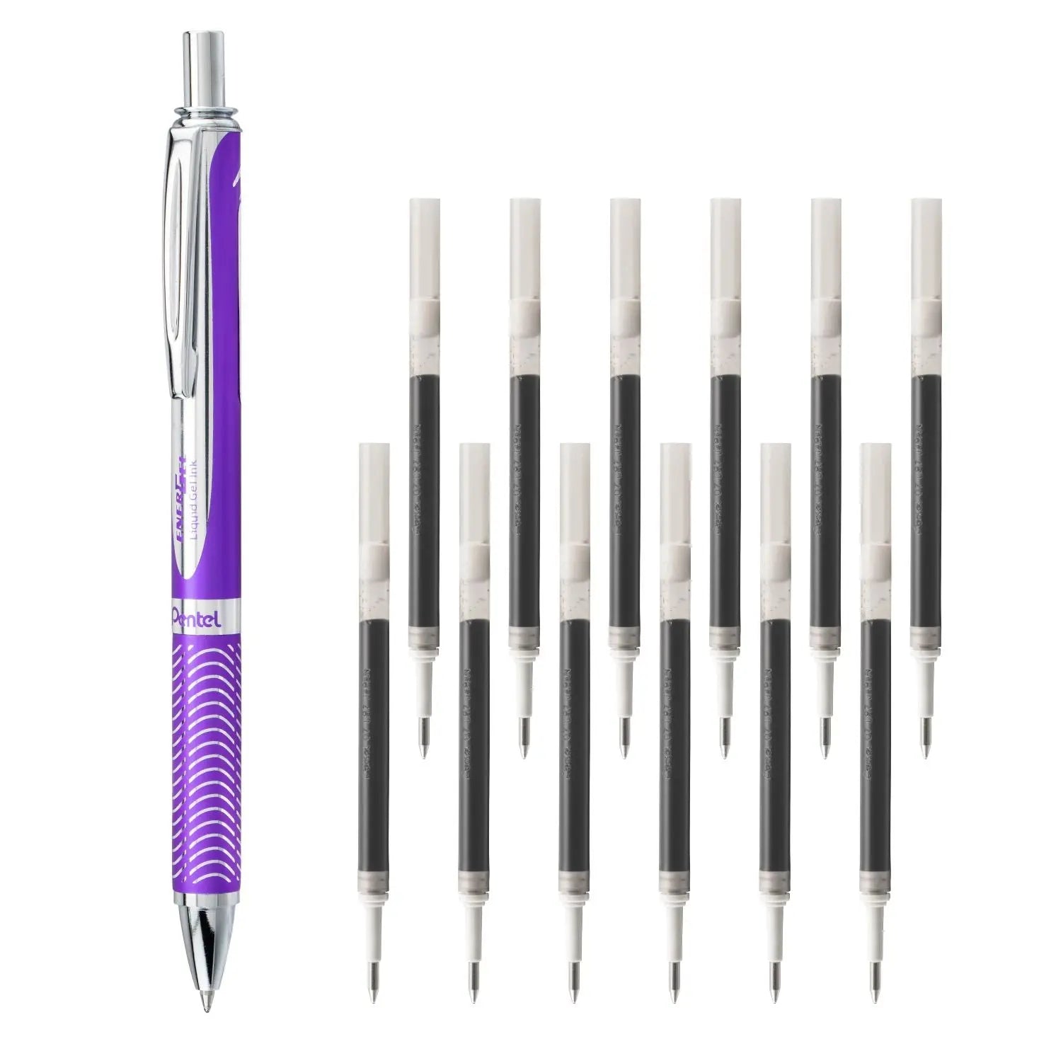 EnerGel Alloy Liquid Gel Pen (0.7mm) Metal Tip with 12 Refills – Gel Pens Bundle